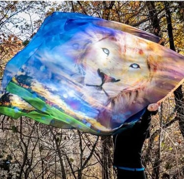 The original King of Glory flag came from Dyed4you Art, a part of Dyed4you Ministries. Meghan is highly anointed and makes beautiful dance flags and prophetic art. If you are interested in purchasing the original high-quality silk King of Glory flag, you can reach out to her through her Etsy store.